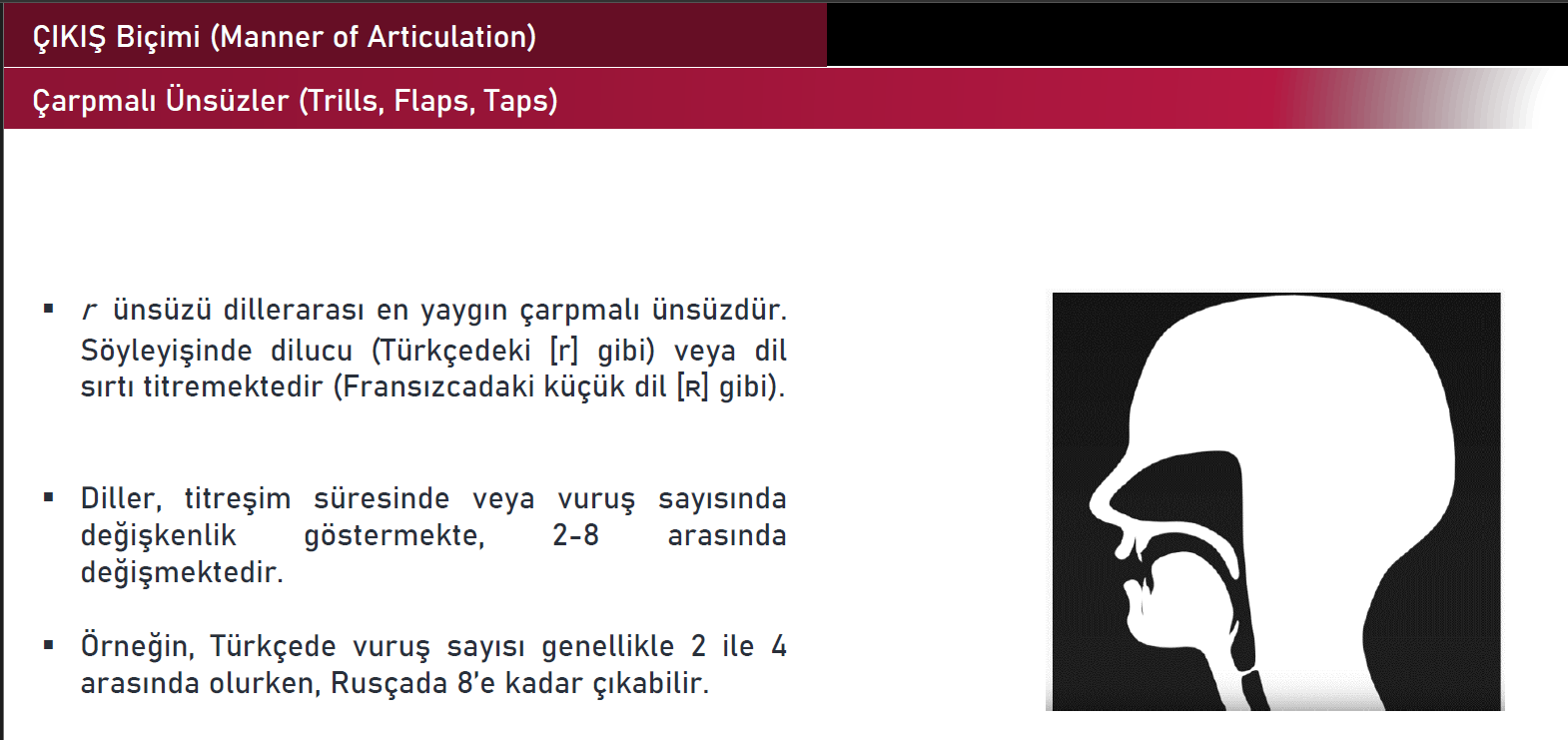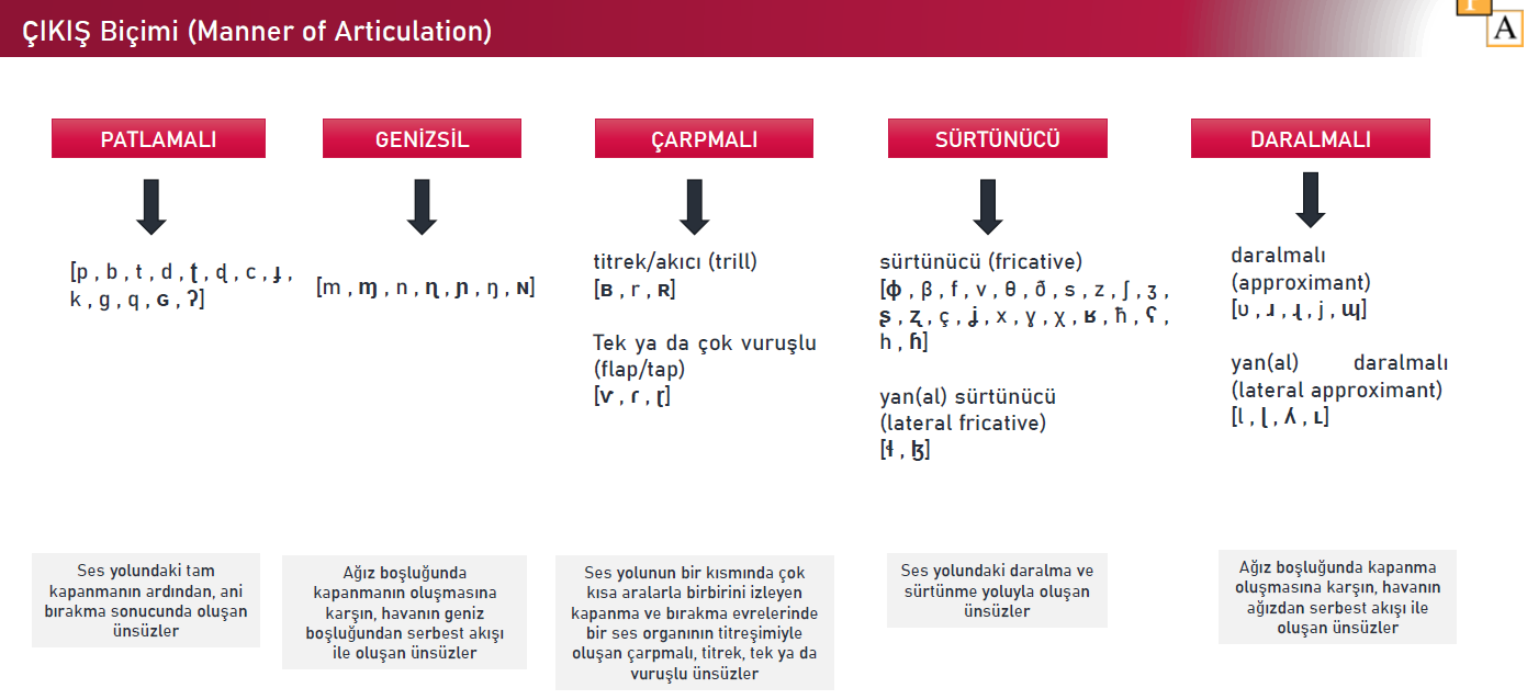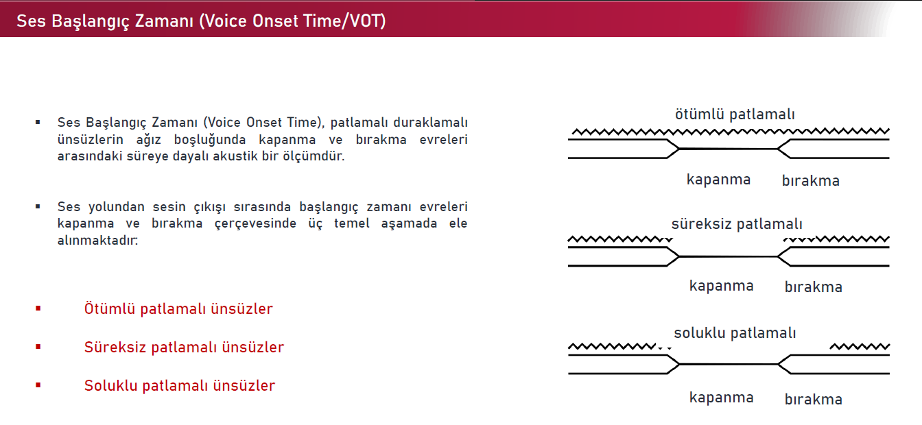 Tüm ünlüler titreşimlidir, yani « sonorant » olarak tanımlanabilir. Duraklamalı sesler (obstruents) ise, yalnızca ünsüzlerden oluşmaktadır. Genellikle sürtünücü ve patlamalı ünsüzler duraklamalıdır. Bu ünsüzler titreşimli ya da titreşimsiz olabilmektedir.
