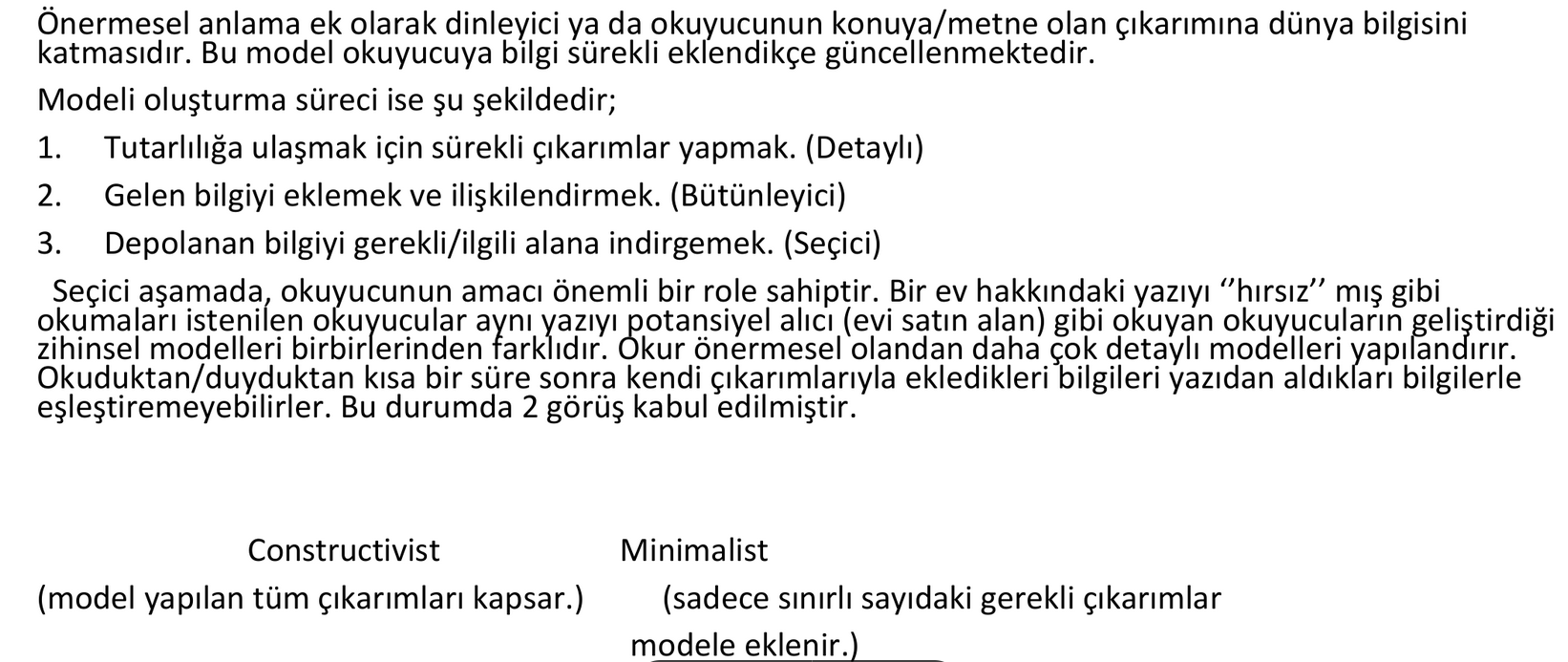 Önceki bilgi bağlam ve beklentilerle anlam oluşturma. Tümcede eksik sözcüğü bağlamdan tahmin etmek.