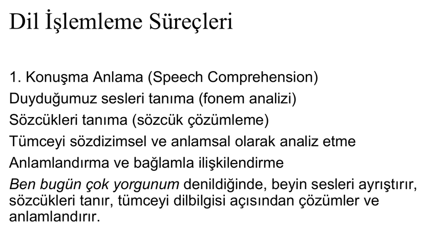 Dil işlemleme süreçlerinde konuşma anlama nasıl bir yol izler?